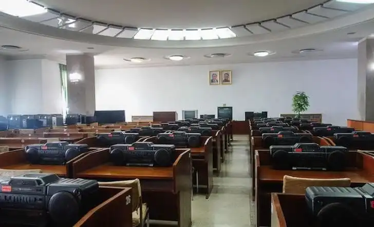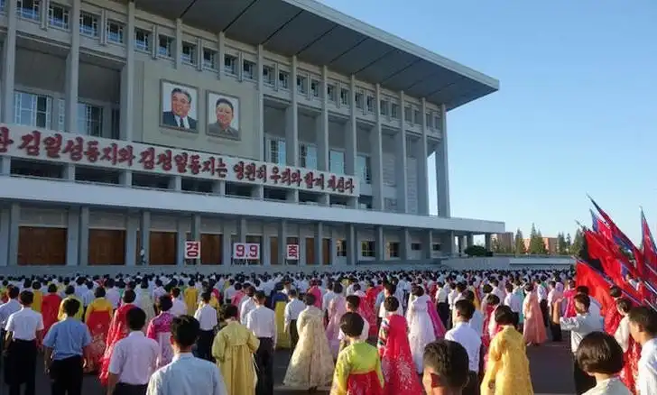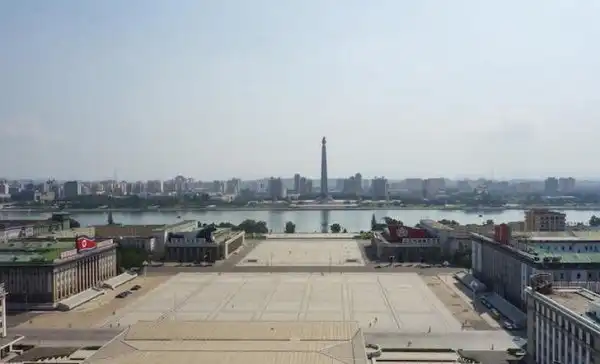 Это - площадь Ким Ир Сена в Пхеньяне. Именно здесь проходят важнейшие государственные мероприятия - демонстрации, митинги, военные парады. Площадь Ким Ир Сена - настоящий символ северокорейской государственной пропаганды.