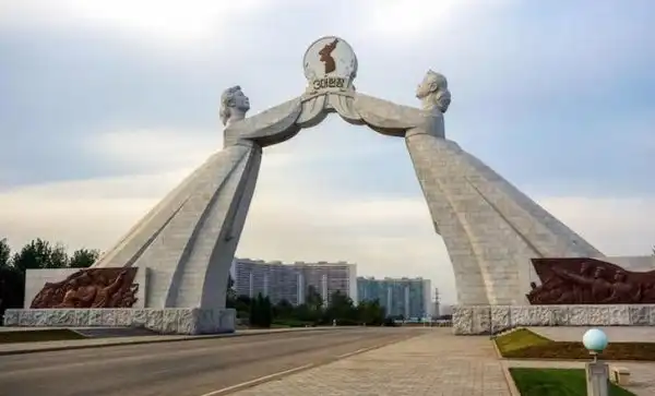 Иногда тоталитарная архитектура способна удивить по-настоящему. Оригинальность, стремительность линий и изящество форм - было бы забавно каждый день проезжать под такой аркой на авто по пути на работу. Но личный транспорт для северных корейцев - непозволительная буржуазная роскошь.
