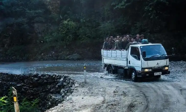Такие грузовички для северных корейцев, живущих в сельской местности, выполняют функцию автобусов. В кузове немилосердно трясет, а в случае дождя становится совсем неуютно, - но другого транспорта северокорейским крестьянам пока никто не предлагает.