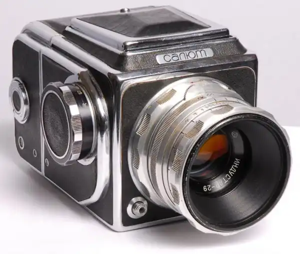 К началу 60-х годов явно обозначилась тенденция к использованию в фотоаппаратостроении передовых по тем временам идей и разработок. В качестве примеров можно привести следующие: «Нарцисс» — высококлассный зеркальный аппарат со сменными объективами форматом 14х21 для 16мм плёнки; «Зенит-6″ — зеркальная камера, имевшая центральный (!) залинзовый затвор, штатно комплектовавшаяся 14-линзовым объективом с переменным фокусным расстоянием «Рубин» 2,8/37-80 (в конце концов, не столь важно, что идея и технические детали этого семейства камер были позаимствованы у немецкой фирмы Voigtlander), встроеный моторный привод в камере «Зенит-5″ (первая в мире 35мм зеркалка со встроенным электромотором), полуавтоматическая отработка экспозиции в камерах «Зоркий-10, -11″, «Киев-15″, автоматическая в «Соколе» и «Киеве-10″.