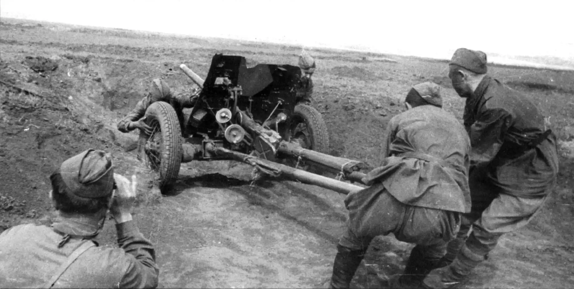 Фото: Расчёт 45-мм противотанкового орудия 53-К готовится к бою