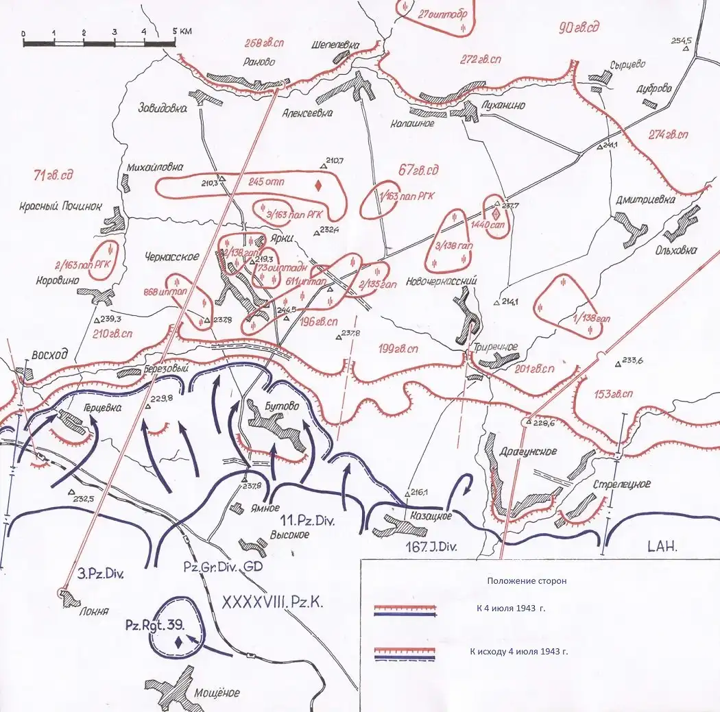 Фото: Ход боевых действий 4 июля 1943 г.