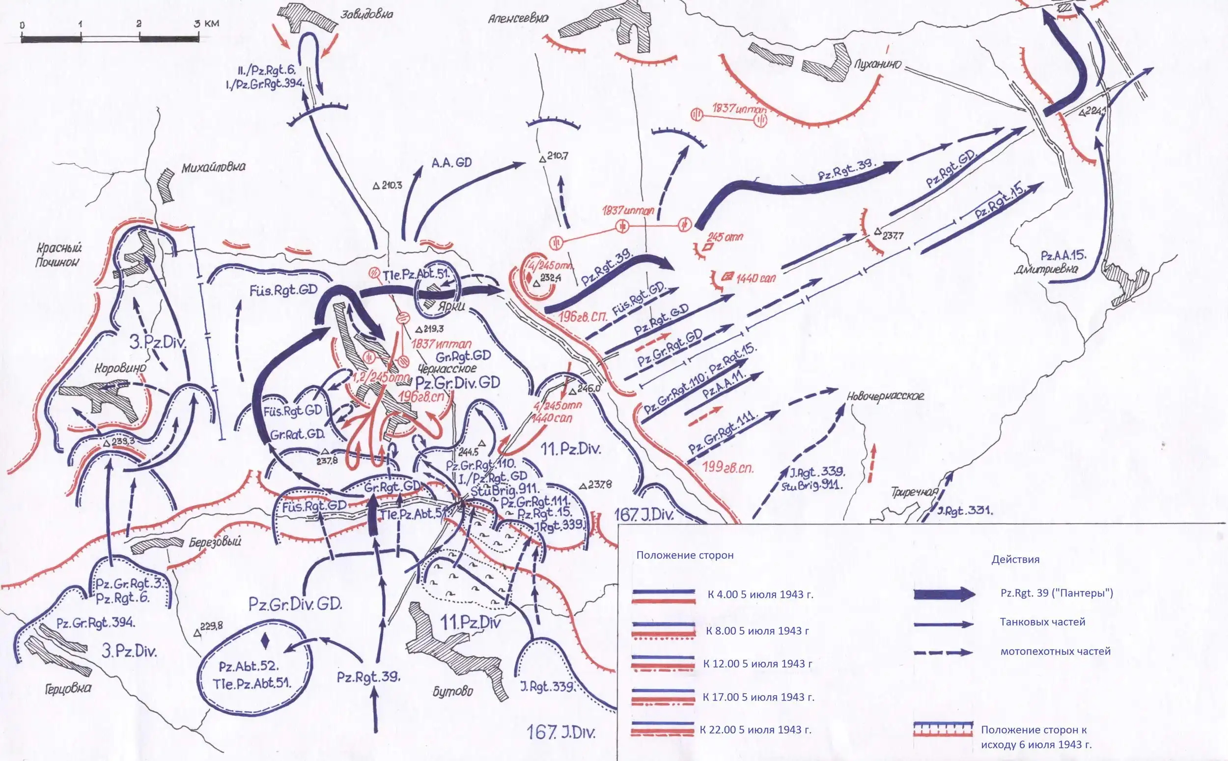 Фото: Ход боевых действий 5–6 июля 1943 г.