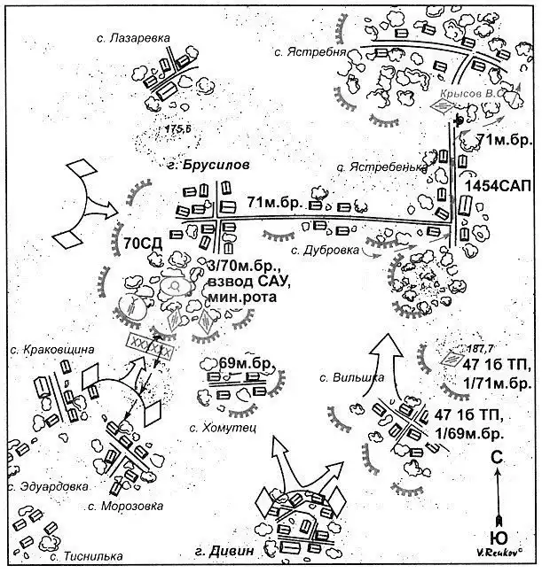 Фото: Схема боя у Ястребеньки. Позиция лейтенанта В. Крысова обозначена в правом верхнем углу