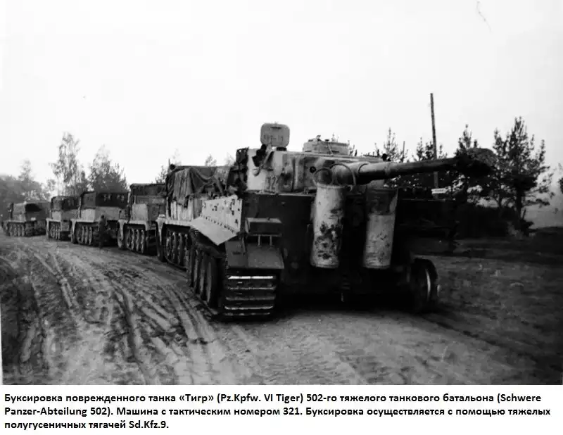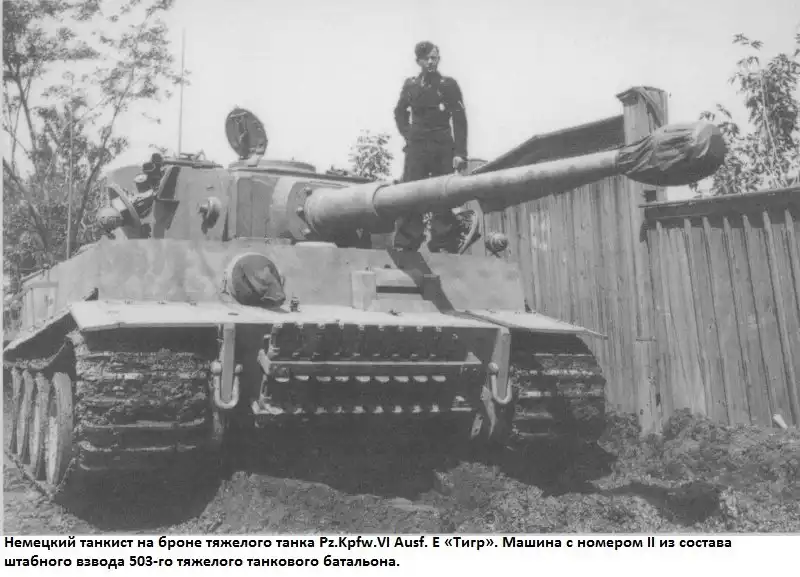 Описание первого применения «Тигров» под Ленинградом в отечественной печати совпадает с гудериановским. Очевидцы писали, что, двигаясь гуськом по узкой дороге, немецкие танки попали под фланговый огонь советской противотанковой артиллерии. Один «Тигр» был подбит, а три других остановились из-за поломок. Три машины немцам удалось эвакуировать, а четвертая осталась на нейтральной полосе, где простояла почти месяц. Затем - как говорят, по личному указанию Гитлера - ее взорвали.