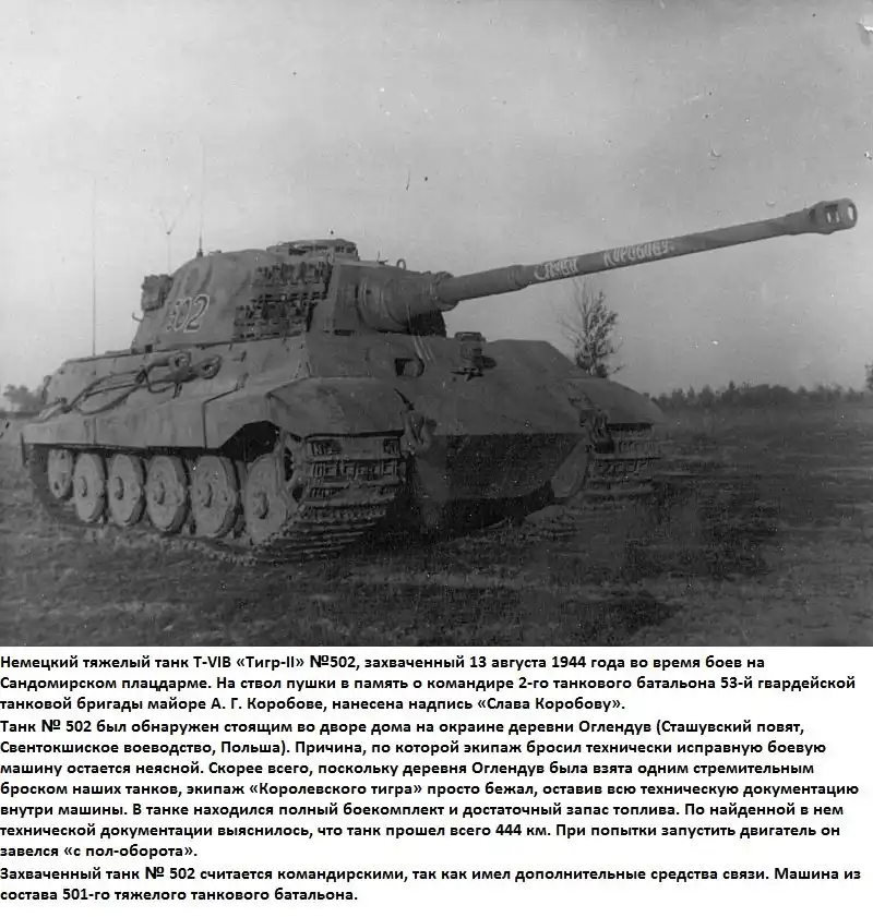 Заместитель командующего бронетанковыми и механизированными войсками генерал-лейтенант Коробков приказал с 25 по 30 апреля 1943 года на полигоне в Кубинке провести испытания трофейного «Тигра». Их результаты оказались просто шокирующими. 76-миллиметровый бронебойно-трассирующий снаряд пушки Ф-34, установленной на танке Т-34, не пробил бортовую броню немецкого танка даже с дистанции 200 метров!