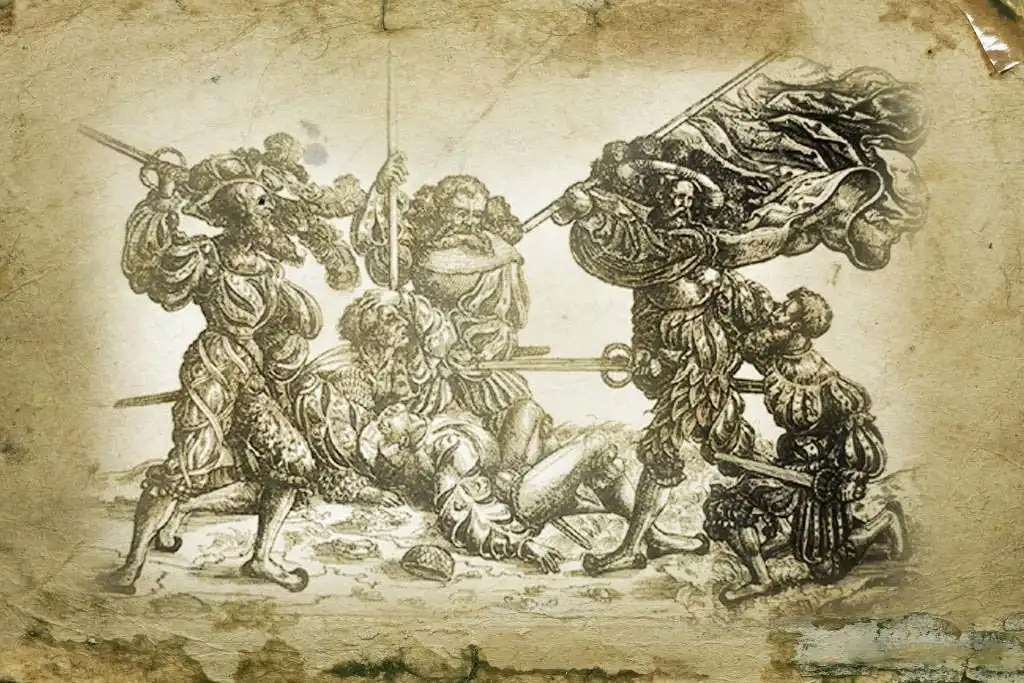 Ландскнехты — один из самых узнаваемых образов Ренессанса. Немецкие наёмники за несколько веков успели и покрыть себя славой, и войти в историю в качестве форменных разбойников. Именно ландскнехтам мы обязаны, например, словами "мародёр" (по имени одного из их капитанов) и "банда" (изначально так назывался просто воинский отряд). Однако в XVI веке, когда ландскнехты вышли на пик известности и военных возможностей, они воспринимались совершенно по-другому — как оплот свободы, равенства, как отдельное общество, лишённое жёсткой иерархии средневекового социума, настоящий другой глобус для изгоев и при этом эффективная боевая единица.