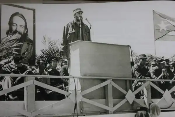 Фидель Кастро выступает перед теми, кого он называл "братьями по оружию"