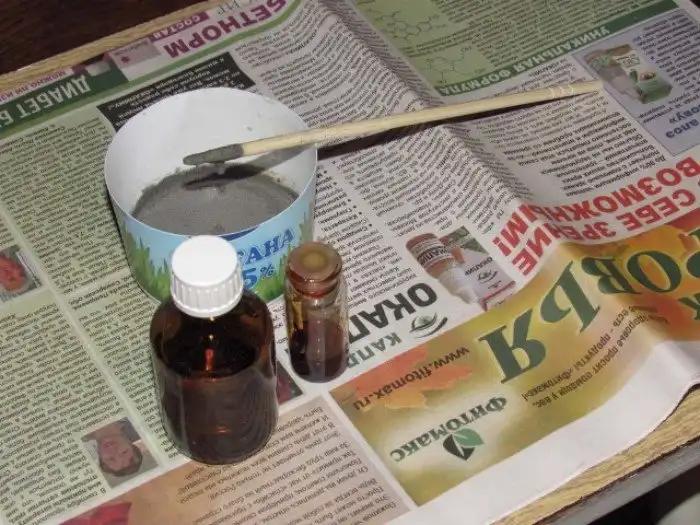 1. Основные элементы: забракованный наждачный круг с крупной фракцией, металлическая ступка, молоток, эпоксидная смола с отвердителем и сопутствующие инструменты.