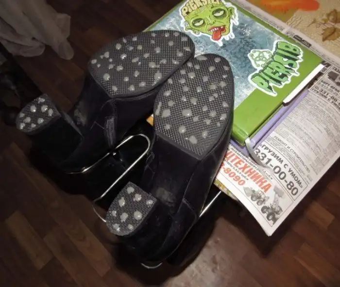 Перед новогодними праздниками сдали в ремонт сапоги жены, подошва стерлась совсем и была как лыжи. Забрали через два дня, выглядели как новые внешне, подошва шершавая и скользить не должна, но реально ничего не изменилось. Идем в магазин, а она на каждом повороте: дай руку, тут подержи, ой-ой скользко . Надоело мне это, вспомнил один старинный способ из моей юности, когда еще занимался кузовным ремонтом автомобилей. Дешево и сердито, на пару сезонов хватае , себе делал аналог на зимние ботинки, не стаптывал покрытие даже об асфальт.