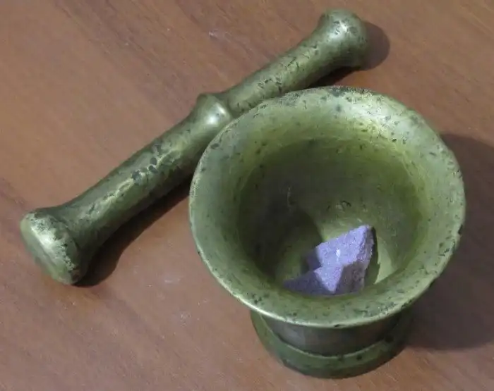 3. Измельчаем фрагменты в ступке до состояния песка, но не в пыль.