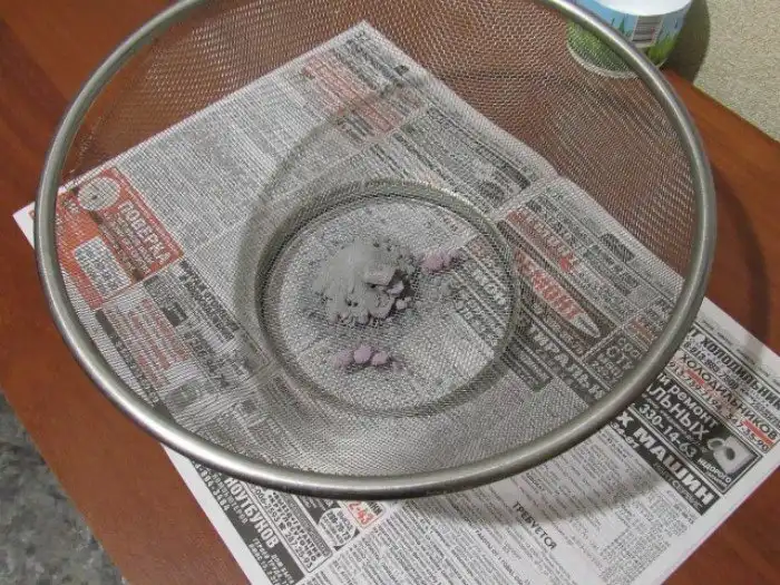 4. Просеиваем через относительно мелкую решетку, у меня это старая фритюрница, которая стала технической.