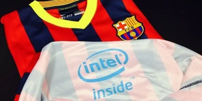 В 2013 году одним из спонсоров футбольного клуба "Барселона" стала компания Intel. По условиям контракта её логотип размещался на внутренней стороне маек игроков, обыгрывая слоган "Intel Inside". Замысел состоял в том, чтобы зрители видели рекламу, когда празднующий гол футболист срывает с себя майку.