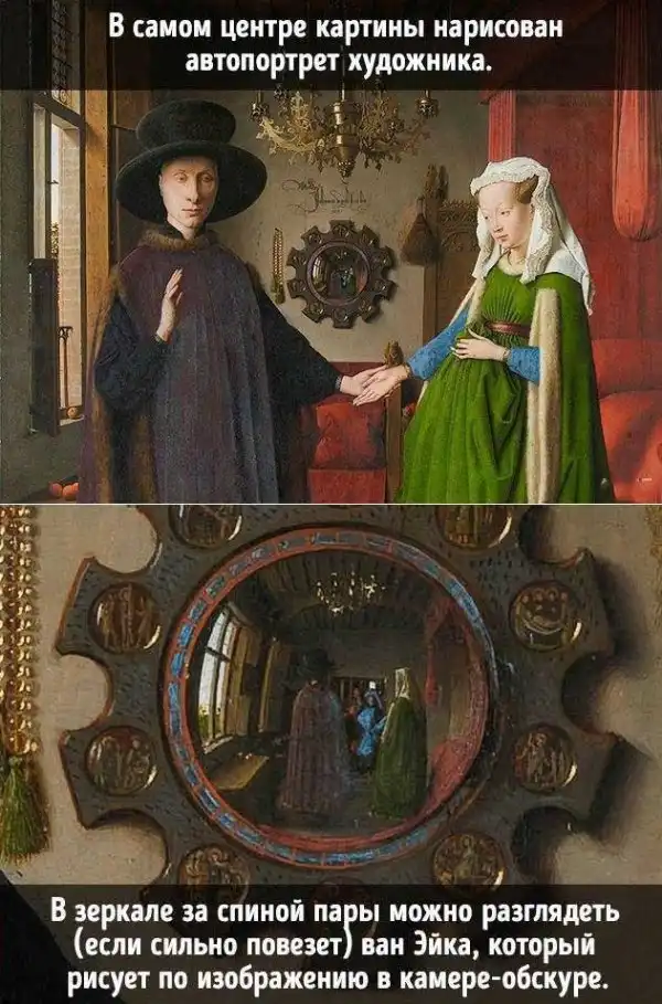 Порой художники оставляют в своих картинах какие-то загадки или послания, заметить которые не так просто. Изобилуют такими хитростями и известные произведения искусства, написанные великими художниками. Далее познакомимся с 10 известными работами, авторы которых позаботились о том, чтобы сделать их более таинственными при помощи некоторых скрытых деталей.