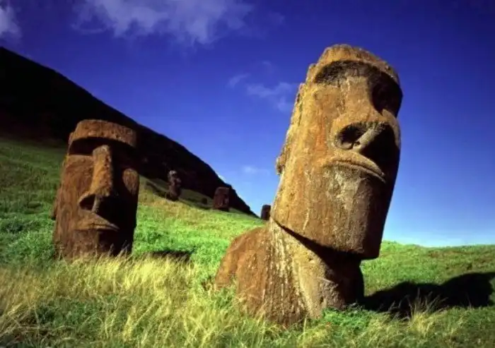 Остров насчитывает около 9 сотен статуй. Загадочные каменные идолы вытачивались из скальных пород Рапа-Нуи. Самый крупный моаи составляет 21 метр в высоту и весит более 15 тонн.
