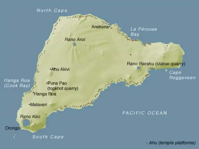 Остров Пасхи (Рапа-Нуи) находится в южной части Тихого океана являющейся территорией Чили. И популярен он не только тем, что образован извержениями трёх вулканов, но и обнаруженными здесь огромными таинственными идолами, которые более известны как моаи.