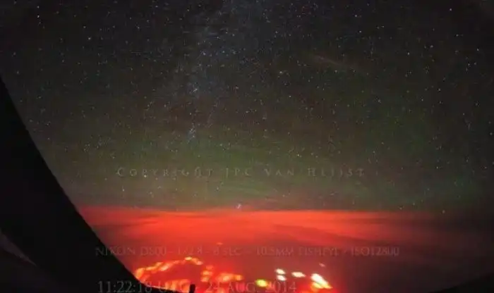 Так вот, по свидетельству этого самого JPC van Heijst, примерно через 5 часов полета с высоты более 10 тысяч метров он заметил в океане нечто такое, чего за всю свою летную практику никогда не видел. Прямо по курсу - к югу от Камчатки - на горизонте вспыхнуло красное свечение. Оно походило на грозовые разряды, но было направлено вертикально вверх. К тому же никакой облачности по курсу не наблюдалось.