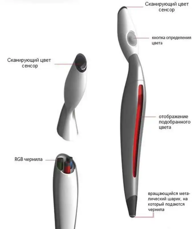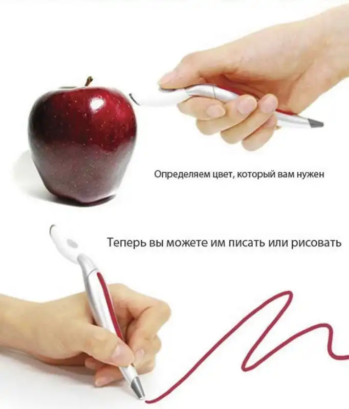 Перед вами высокотехнологичное устройство, о котором мечтает каждый художник. Дело в том, что данная ручка может писать абсолютно любыми цветами. Она копирует цвета предметов, к которым прикасается, а затем легко их воспроизводит.