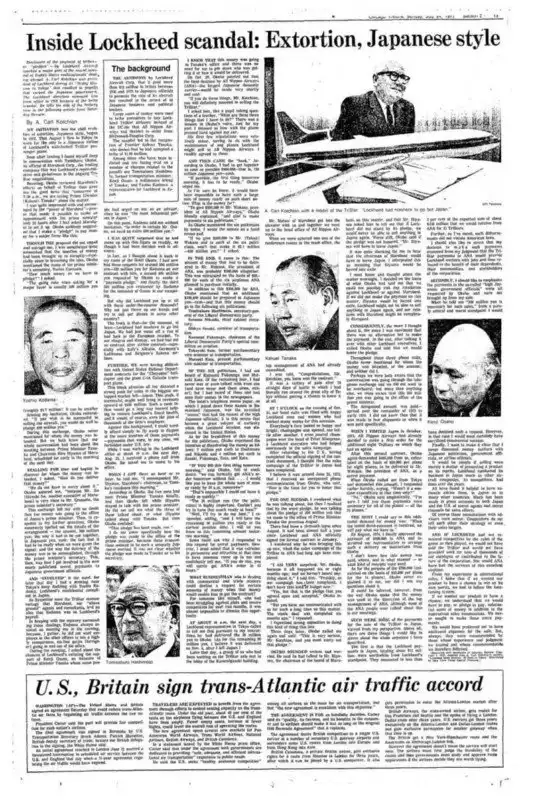В феврале 1976 года заместитель председателя Lockheed сообщил Сенату, что они заплатили около $ 3 млн в виде взяток премьер-министру Японии Какуэйю Танака. Этот был огромный скандал, были даже попытки подстрекать террористические нападения на Киотский доме Кодама. Авиакомпания Lockheed выплатила миллиарды долларов в виде взяток видным японским деятелям. Вскрылись аналогичные истории в Западной Германии, Саудовской Аравии, Италии и Нидерландах. После скандала председатель правления, заместитель председателя, и президент Lockheed ушли в отставку. Скандал также вдохновил Джимми Картера на Закон о коррупции за рубежом.