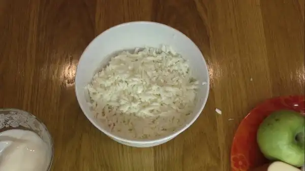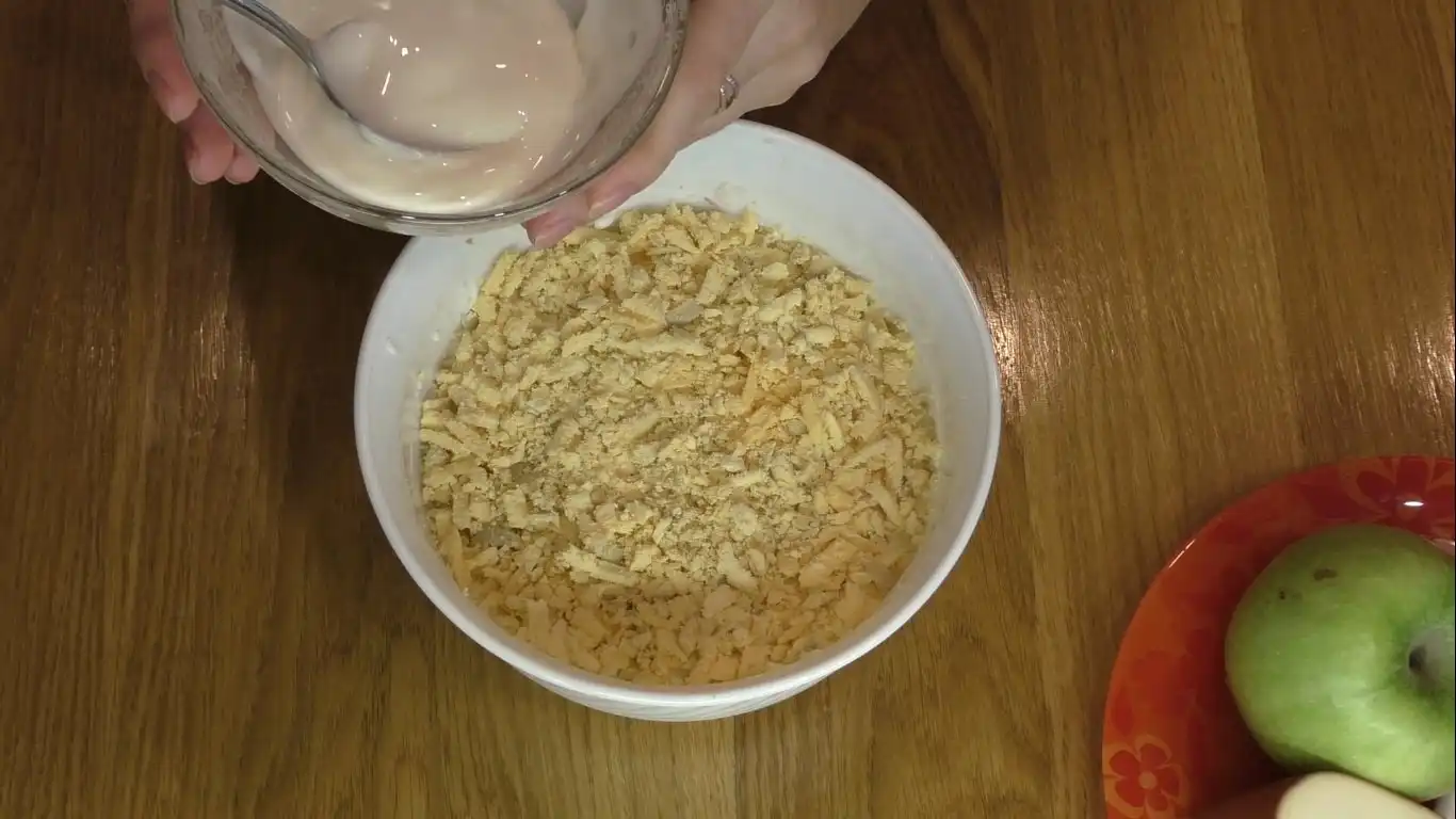 Далее идет слой натертого на терке яблока, предварительно очищенного от кожуры.