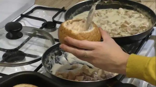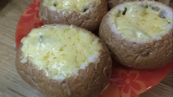 10. Готовый жульен разложите в булочки, которые уже успели подрумяниться в духовке.