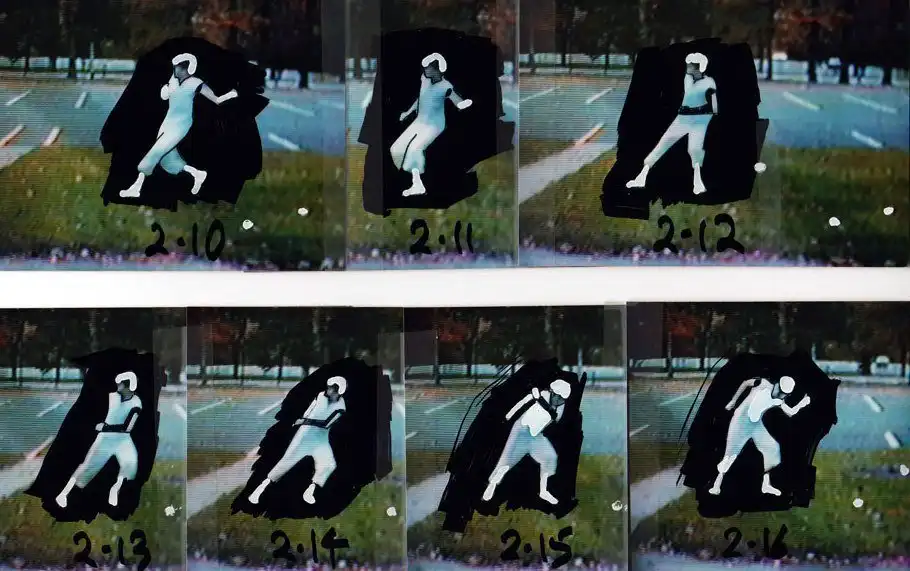 В середине 1980х не существовало хороших технологий для перевода видео с плёнки в компьютер, поэтому тут Джордану пришлось поработать. Он приобрёл видео-магнитофон, и стал проигрывать свою плёнку по несколько кадров вперёд, при этом снимая экран телевизора обычным фотоаппаратом. На получившихся фотографиях он обвёл силуэт чёрным фломастером, и выделил нужные части светлым цветом, затем отсканировал результат, и нарезал в памяти компьютера.