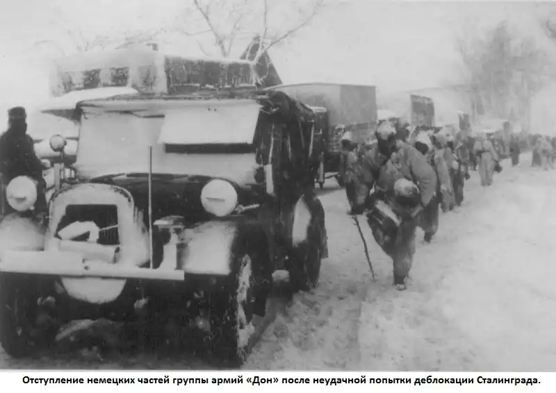 Прорывать окружение должна была группа армий «Дон», которой командовал Э. фон Манштейн. Но какими силами это делать, именитый немецкий командующий затруднялся ответить. Ему, конечно, пообещали свежие части для организации контрудара — в частности, 2-й танковый корпус СС, в котором было три полностью укомплектованных танковых дивизии, в том числе новейшие «Тигры». Но под Сталинград 2-й корпус добрался бы не раньше февраля. Даже если предположить, что Красная армия до того времени будет вести себя пассивно, не штурмуя «котёл», всё равно это было непозволительно долго. Армейских лошадей, которых уже сейчас были вынуждены есть солдаты Паулюса, на два месяца точно бы не хватило.
