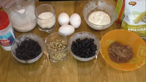 В первую очередь, смешайте яйцо с сахаром, сметаной и ложкой пищевой соды. Полученную массу хорошо взбейте миксером и дайте ей настояться.