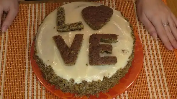 Готовый торт можно украсить крошкой бисквита или молотым грецким орехом.