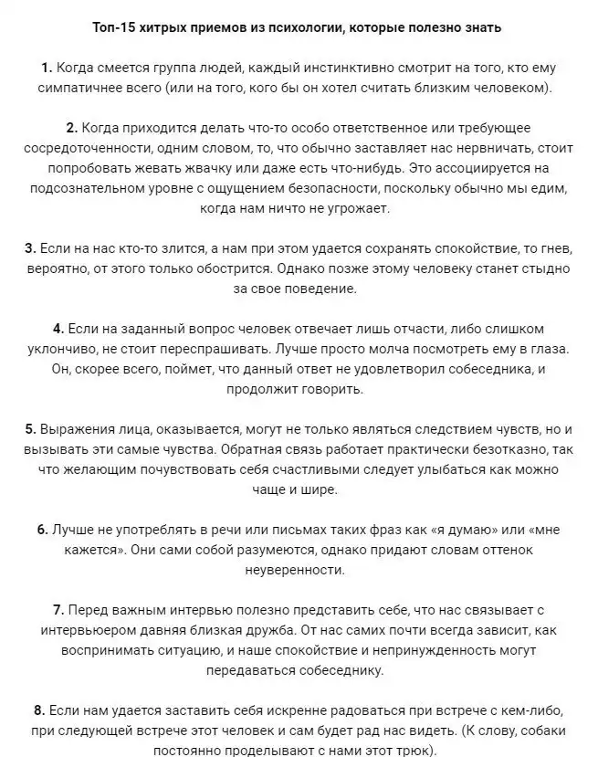 ТОП - 15 хитрых приемов из психологии которые должен знать каждый!