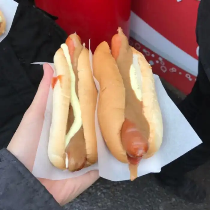 Традиционный исландский хот-дог пылсу готовится с сосиской из мяса барашка, жареным луком и горчицей.