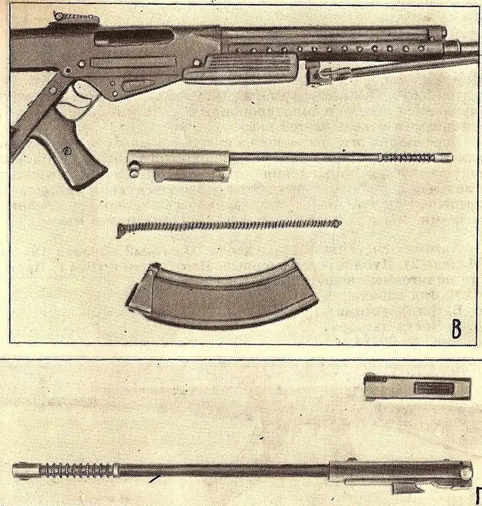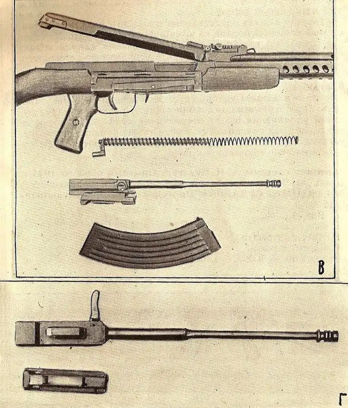 Автомат системы А. И. Судаева – опытный образец 1944 года (Модель 3). В – части автомата, Г – части затвора.