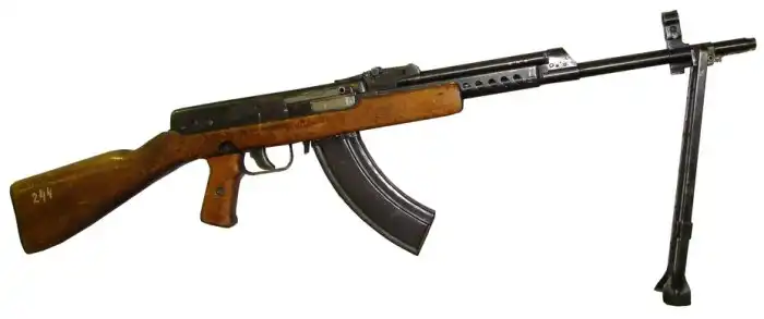 Автомат системы А. И. Судаева (заводской номер – ЮЕ 328). Опытный образец 1944 года. Вид справа (сошки откинуты).