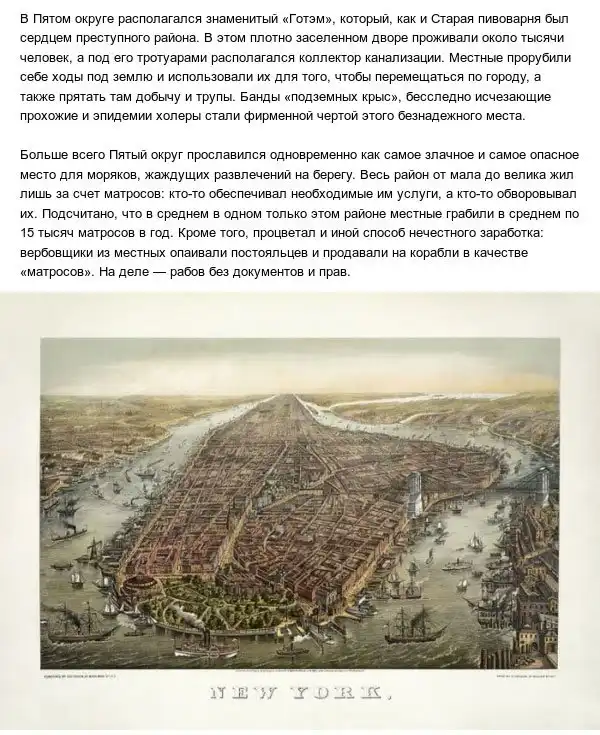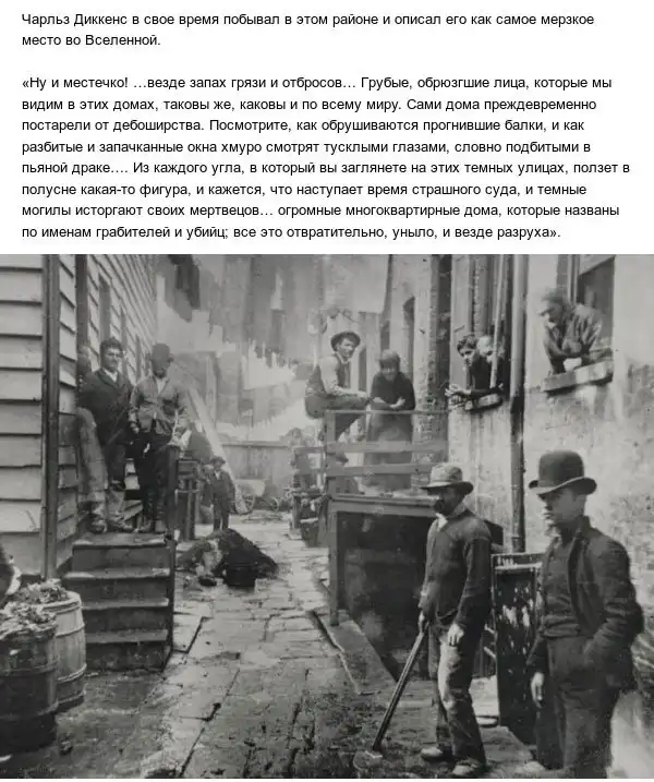 Все кто смотрел фильм «Банды Нью-Йорка» прекрасно помнят жестокие битвы головорезов, и их праздную жизнь в свободное от драк время. Мрачный район, в котором происходили все действия, действительно был в Нью-Йорке, да и названия многих банд были вполне реальными, поэтому далее предлагаем вам поближе познакомиться с криминальным миром Нью-Йорка XIX века.