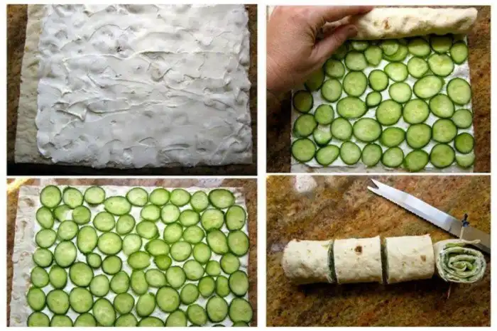 Очень удобное, если у вас имеется лаваш - в него можно завернуть практически все и это будет красиво и вкусно. Вот рулет с мягким сыром и огурцом