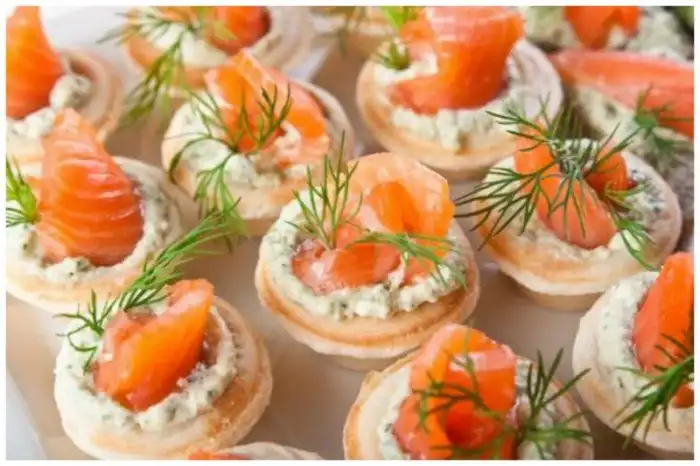 И чипсов нет? А крекеры есть? Нет? А огурец есть? Алгоритм действий прежний - смешать, выложить, украсить