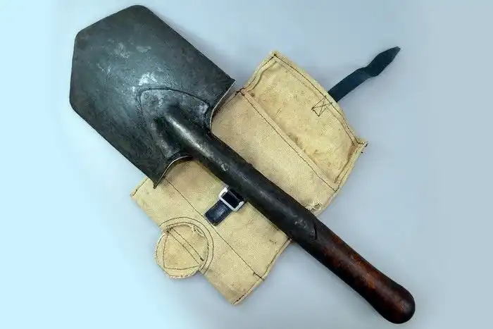 Малая пехотная лопата. В ходе войны малая пехотная лопата МПЛ-50 претерпела ряд изменений, направленных на упрощение производства. Вначале в целом конструкция лотка и лопаты осталась без изменений, но крепление накладки с задним тяжем стало производиться точечной электросваркой вместо заклёпок, чуть позже отказались от обжимного кольца, продолжая крепить черенок между тяжами на заклёпках.