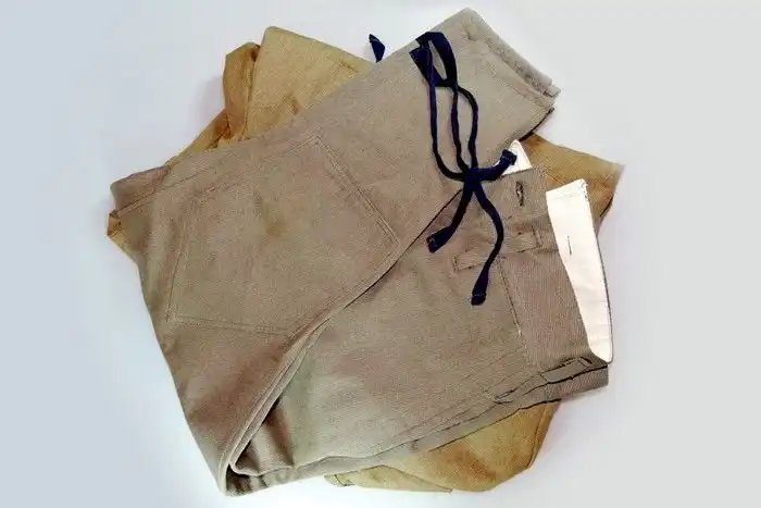 По низу штанин пришивались завязки. По бокам шаровар имелось два глубоких кармана, а ещё один карман с клапаном, застёгивавшимся на пуговицу, располагался в задней части. У пояса, рядом с гульфиком, находился маленький кармашек для смертного медальона. На коленях нашивались пятиугольные накладки-усилители. На поясе предусматривались шлёвки для брючного ремня, хотя возможность регулировки объёма была предусмотрена и с помощью хлястика с пряжкой в задней части. Изготавливались шаровары из специальной двойной «шароварной» диагонали и были достаточно прочными.