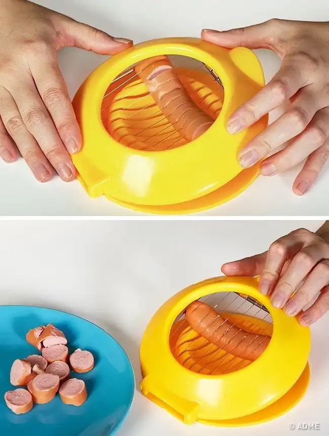 При помощи яйцерезки можно накрошить не только яйца, но и, к примеру, сосиски — отличный вариант для тех, кто постоянно спешит.