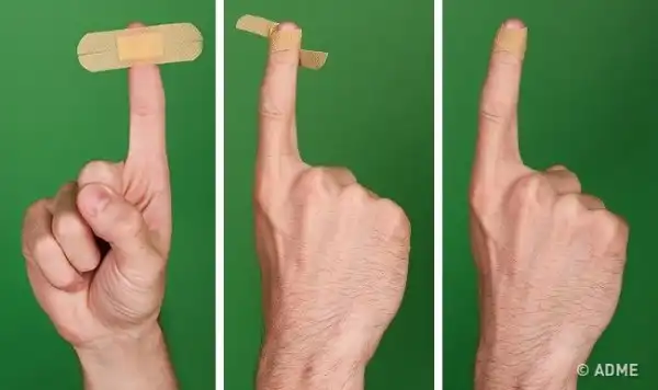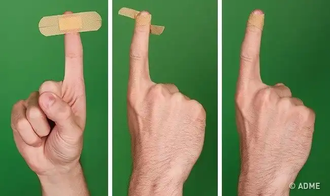 Обычно пластырь, наклеенный на палец, быстро с него съезжает. Чтобы этого не случилось, нужно сделать два небольших надреза по бокам и закрепить пластырь крест-накрест.