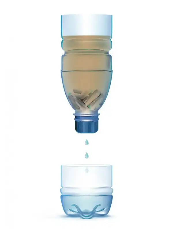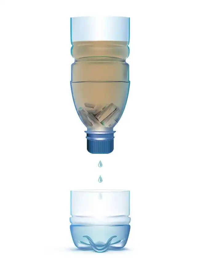 Сделайте отверстие в крышечке, через которое будет появляться отфильтрованная вода.