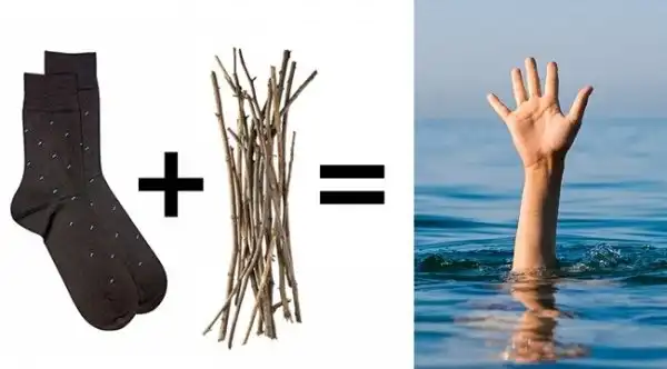 набитый сухими ветками носок можно использовать в качестве спасательного линя для