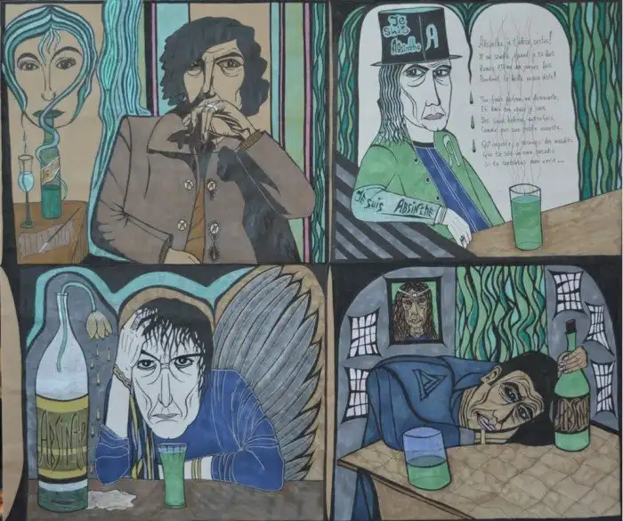 В «Исповеди», написанной в 1895 году, Верлен раскаивается в своей зависимости от абсента: «Абсент! Как страшно думать о тех днях и о более недавнем времени… Один глоток отвратительной ведьмы (какой дурак назвал ее феей или зеленой музой!), один глоток пленял меня, но затем мое пьянство привело к более тяжелым последствиям». На фото: Поль Верден в интерьере парижского кафе.