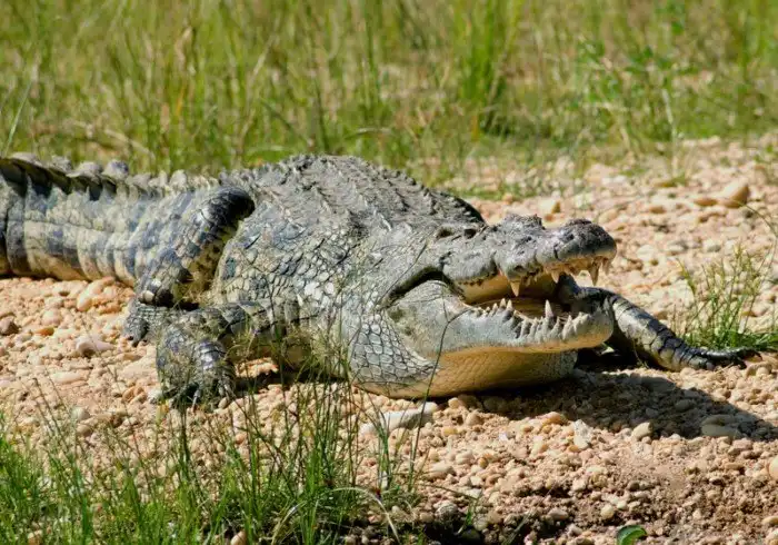 Крокодилу камни помогают измельчать пищу в процессе пищеварения. Кроме того, камни служат балластом при погружении под воду.