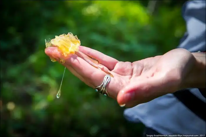 Ну и в общем-то, вот он в руках бортевика — самый настоящий дикий мед. Тот, что так и не смог добыть наш всеми любимый Винни-Пух…