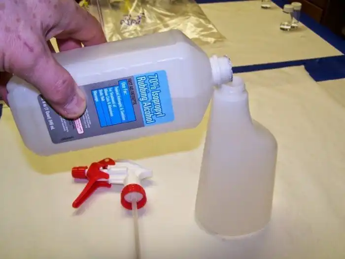 Распылите спирт в воздухе там, где завелись фруктовые мушки. Это убьет их и помешает размножиться.