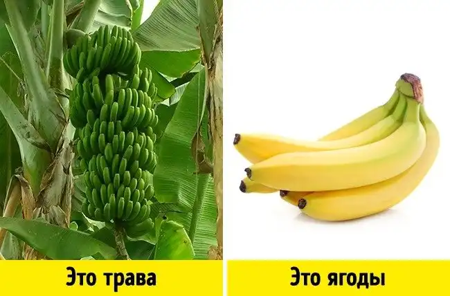 На самом деле бананы — плод травянистого растения, не имеющего ничего общего с пальмами. Правда, трава эта вырастает до гигантских размеров — высота некоторых ее побегов может достигать 15 метров. И кстати, банан — это ягода.
