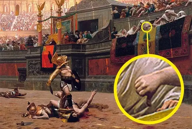 ет ни одного доказательства того, что император приказывал убить гладиатора, опустив вниз большой палец. Выражение pollice verso, которое используется для обозначения этого жеста, переводится как «перевернув большой палец», а вот вверх или вниз — неясно. В 1872 году этот жест изобразил Жан-Леон Жером на картине Pollice verso, которая и стала «родоначальником» этого популярного заблуждения.