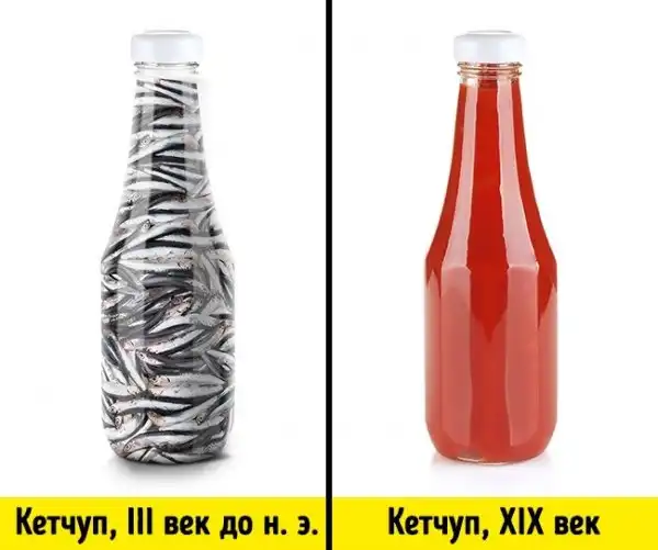 Первые рецепты привычного кетчупа из помидоров появились в американских кулинарных книгах в начале XIX века. А примерно за 200 лет до этого в Англию из Азии привезли соус из анчоусов, рыбного рассола, вина, специй, чеснока, фасоли, грецких орехов и грибов под названием сatchup или ketchup, который, как считается, был изобретен в Китае примерно в III веке до н. э.