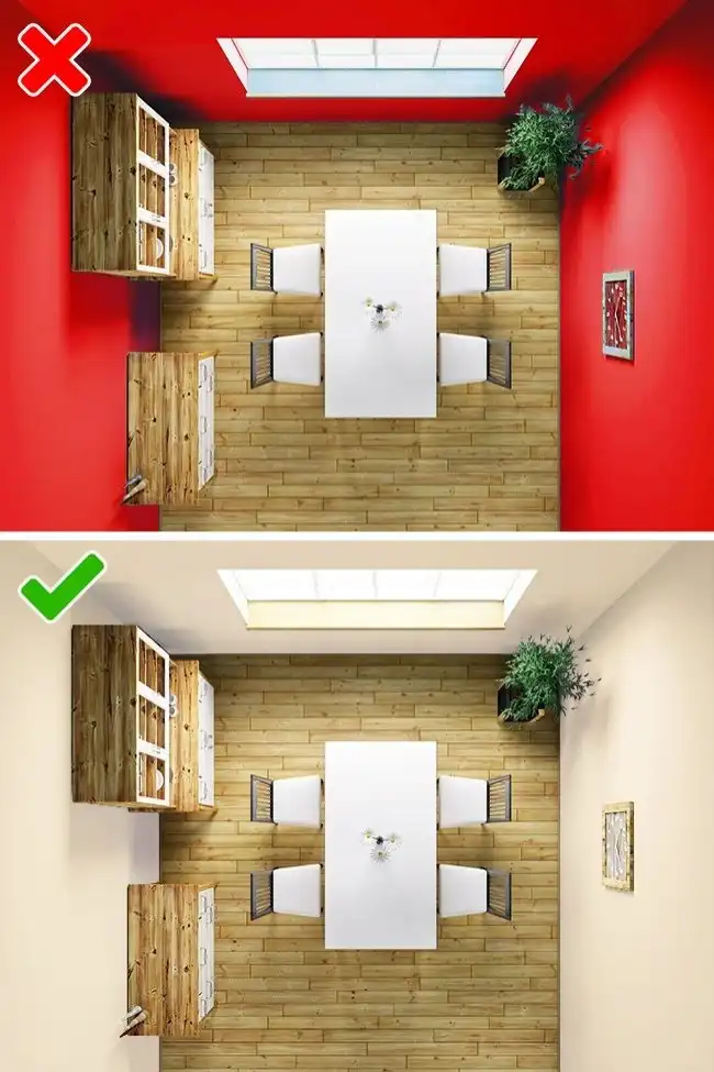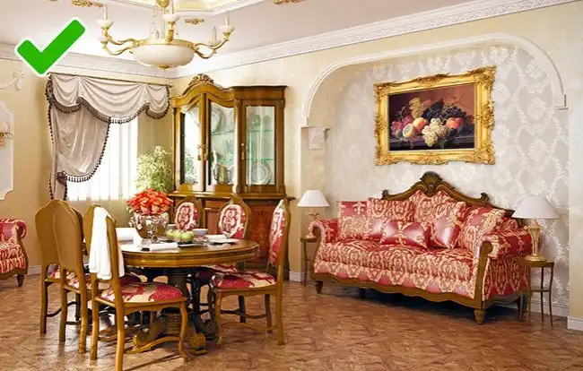 Главное правило — соотносите количество и размеры мебели с габаритами комнаты. Лабиринт из столов, кресел и шкафов действует на нервы в комнате любого размера. Вряд ли кто-то приходит в восторг от необходимости постоянно обходить углы, перешагивать через мешающие ножки и протискиваться в дверь боком.